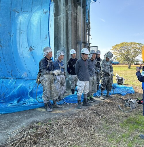 | 13:00 作業再開 | 作業を開始する前に、 もう一度ミーティング。 安全作業の為に欠かせません。 |